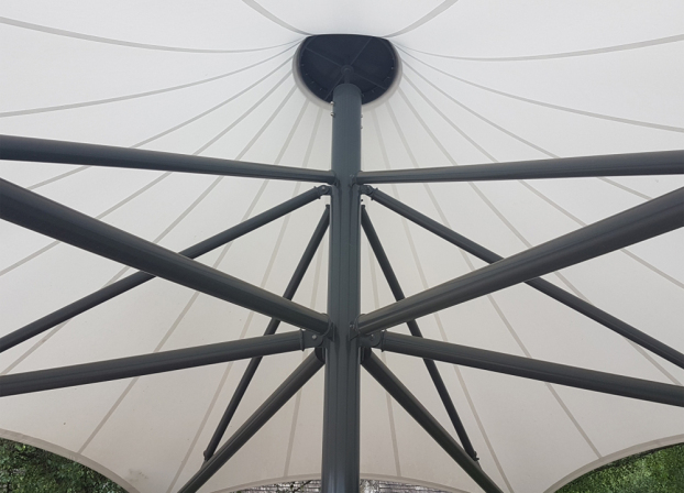 عناصر فشاری: قوسها و ستونها که نیروی فشاری را انتقال میدهند. لبهٔ چادر همواره تمایل به لرزیدن در مقابل نیروهای باد وسایر نیروها را دارد، به همین علت معمولاً لبه چادر را به صورت مقعر میسازند که همواره درکشش باقی بماند و از پارگی آن جلوگیری شود.