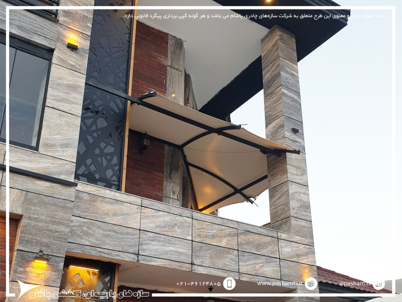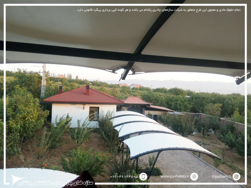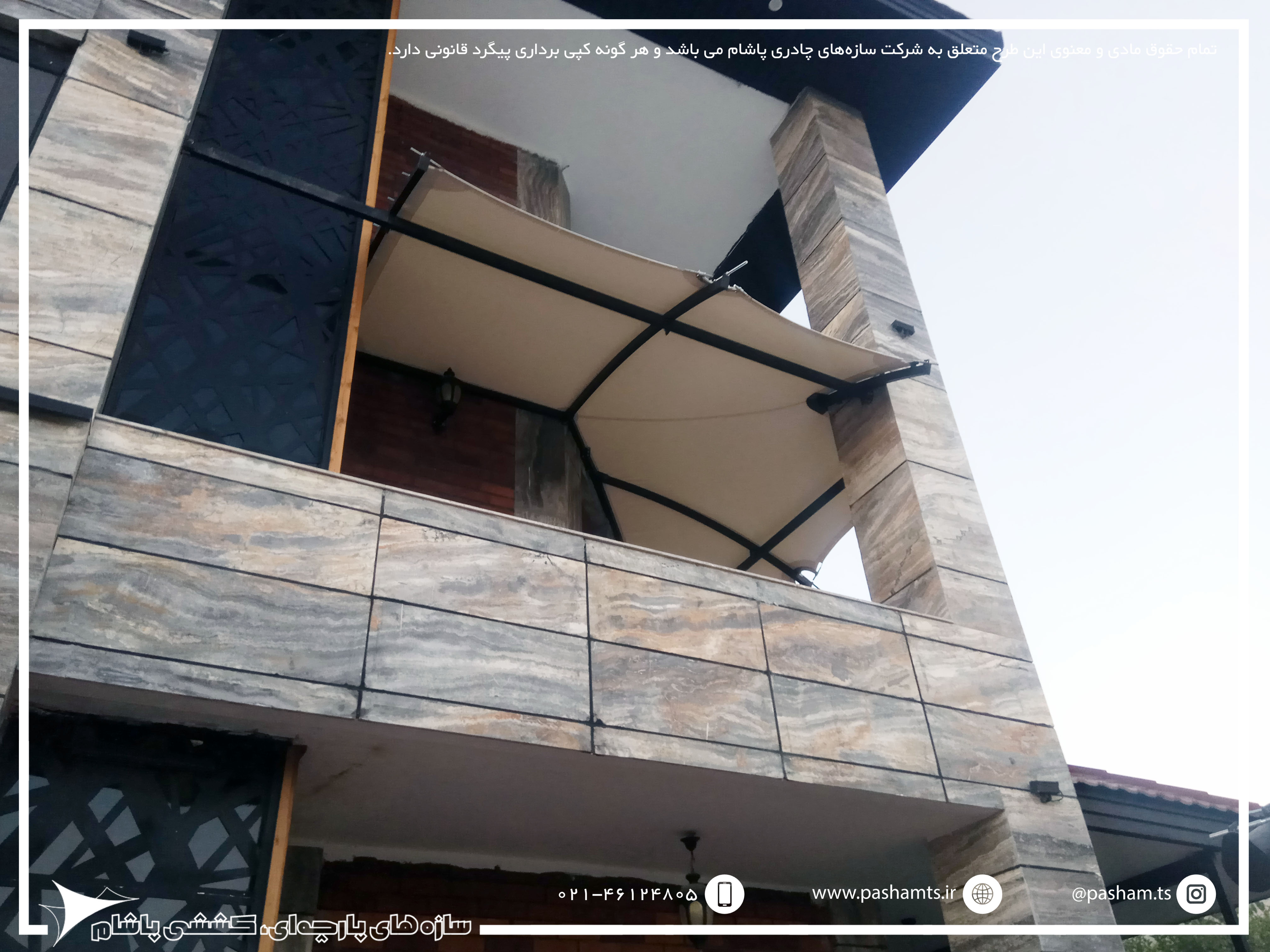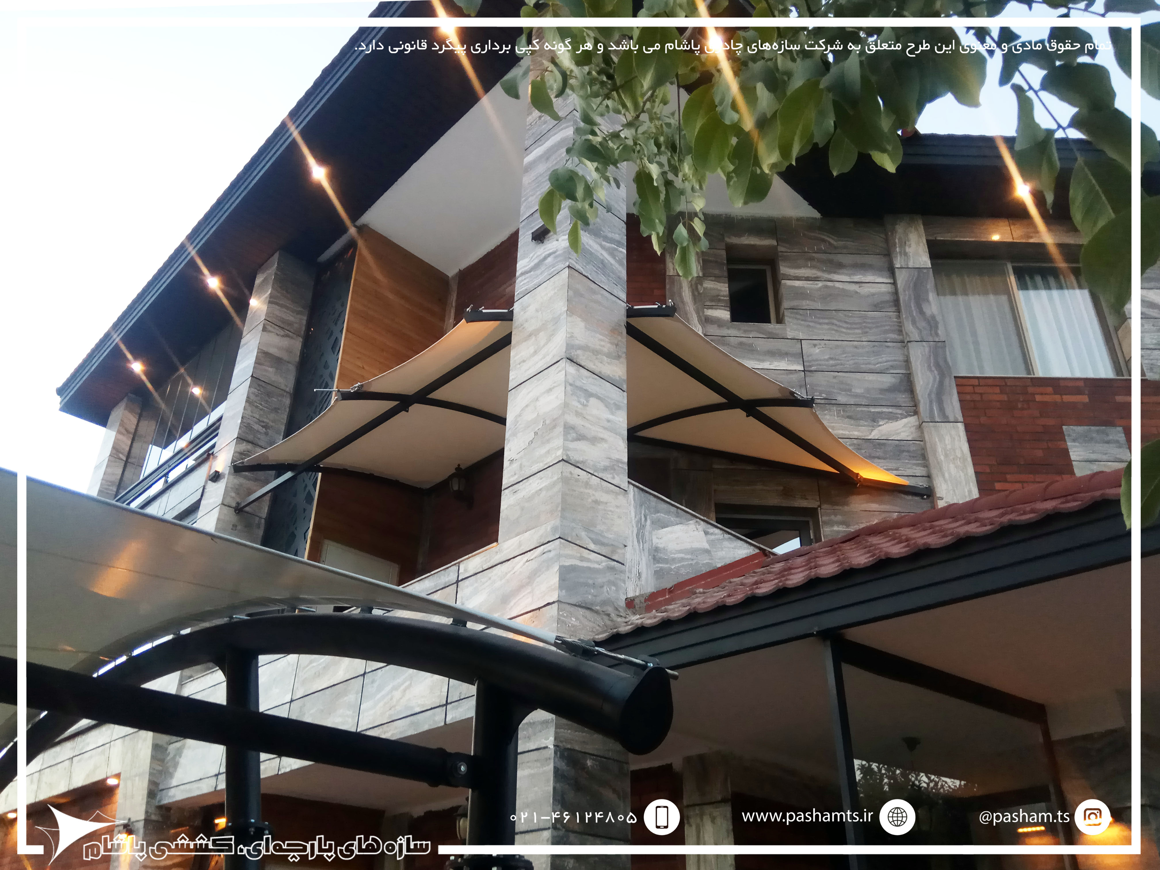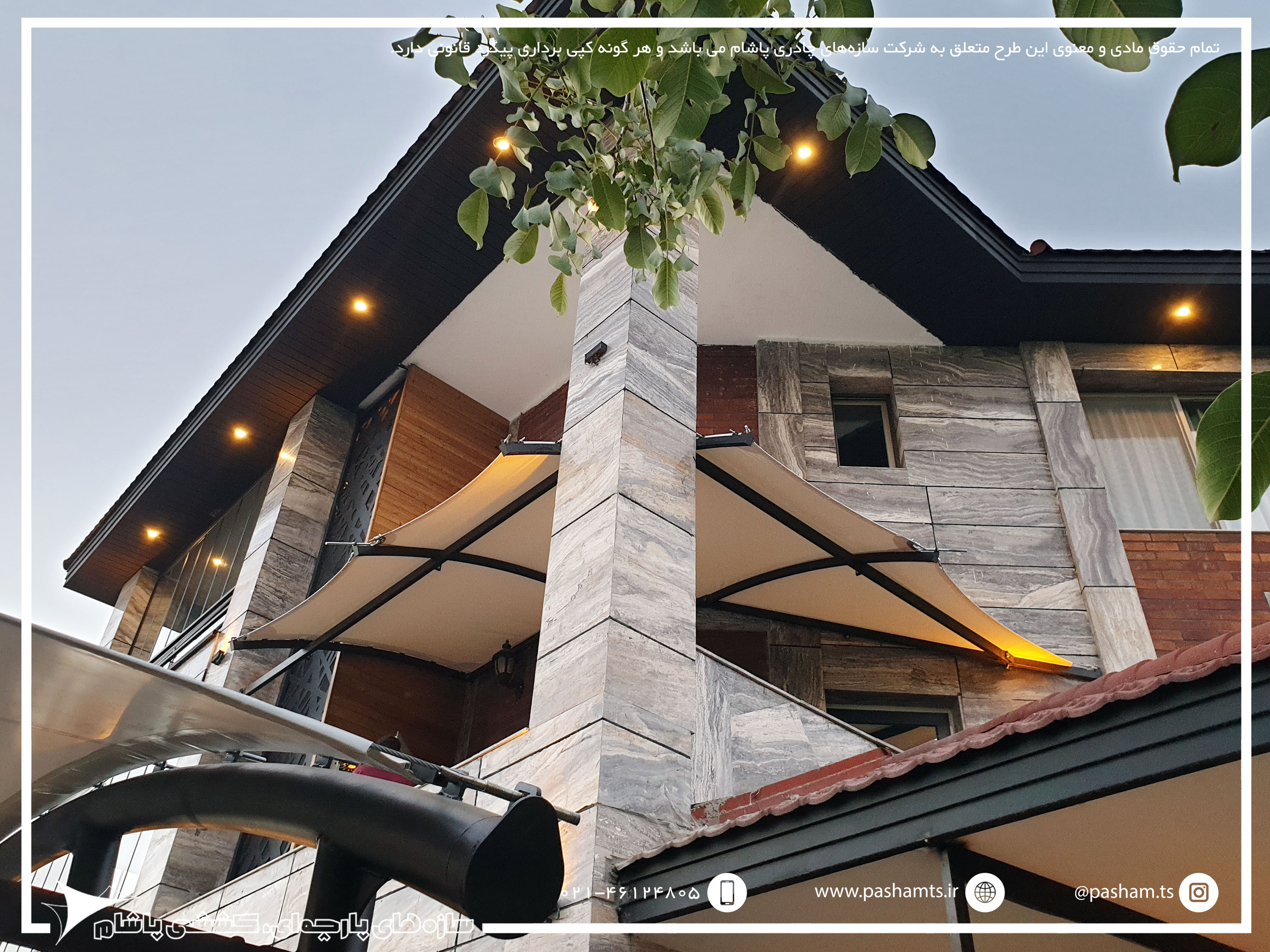 این پروژه در روستای چنارشرق، دماوند در استان تهران اجرا و نصب گردیده است. کل مدت زمان از سفارش تا نصب این پروژه کمتر از 20 روز انجام شده است که با توجه به فرم نامتقارن تراس مناسب می باشد و با توجه به معماری مدرن ویلا و محوطه سازه، سایبان پارچه ای بسیار ظاهر زیبا و جذابی پیدا کرده.