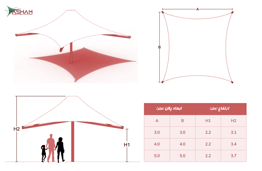 البرز سایبانی ثابت با فرم مخروطی (خیمهای) است که این اعتماد رو به شما میدهد که پوشش بسیار خوب و زیبا داشته باشد، مدل البرز می تواند به آسانی در هر فضایی، براي ایجاد سایه و زیبایی نصب گردد.