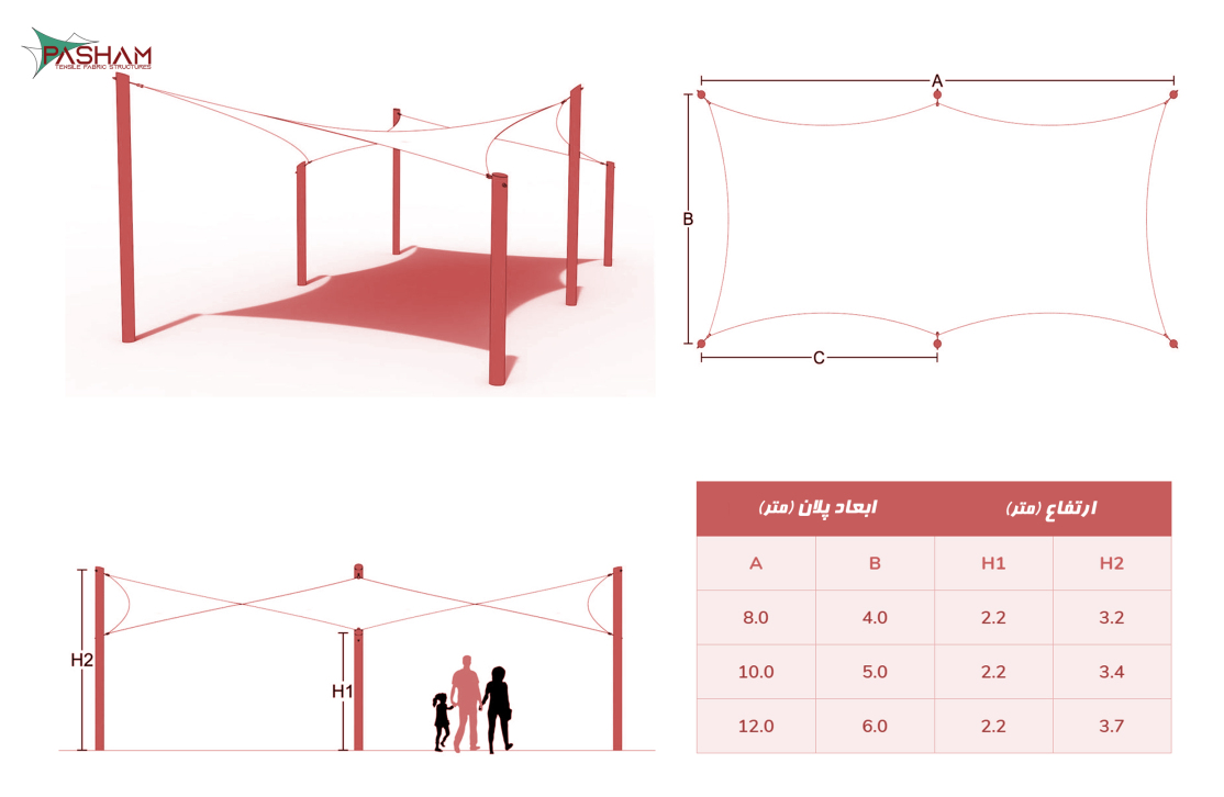 مدل مواج گزینه خیره کننده و در عین حال مقرون به صرفه ای است. مواج در یک محدوده انعطاف پذیر در اندازه های 8m x 4m ، تا حداکثر 14m x7m است، همه توسط شش پایه فولادی پشتیبانی می شود (با گزینه های مختلف در دسترس است). مواج عملکرد خوبی را در همه شرایط جوی ارائه می دهد و ظاهر بسیار خوبی خواهد داشت و وظیفه خود را تا 20 سال انجام می دهد. و البته کاملاً با ضمانت 5 ساله ما پشتیبانی می شود.