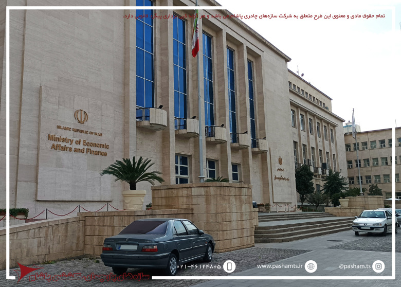 در پروژه وزارت امور اقتصاد و دارایی دو فضا گوشه حیاط برای سایبان خودرو های اشخاص مهمی چون وزیر و معاونین در نظر گرفته شده بود که گروه مهندسی پاشام به خوبی با طراحی سازه ای منحصر به فرد این وظیفه را انجام داده تا بتواند پوششی مناسب در برابر برف و باران و ... ایجاد نماید. طراحی سازه با توجه به برف مبنا منطقه طبق آیین نامه مقررات ملی ساختمان طراحی و اجرا شده است.