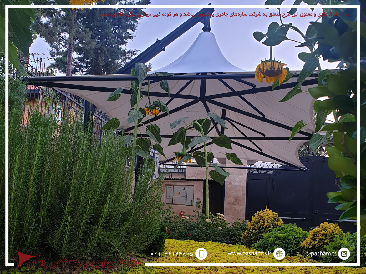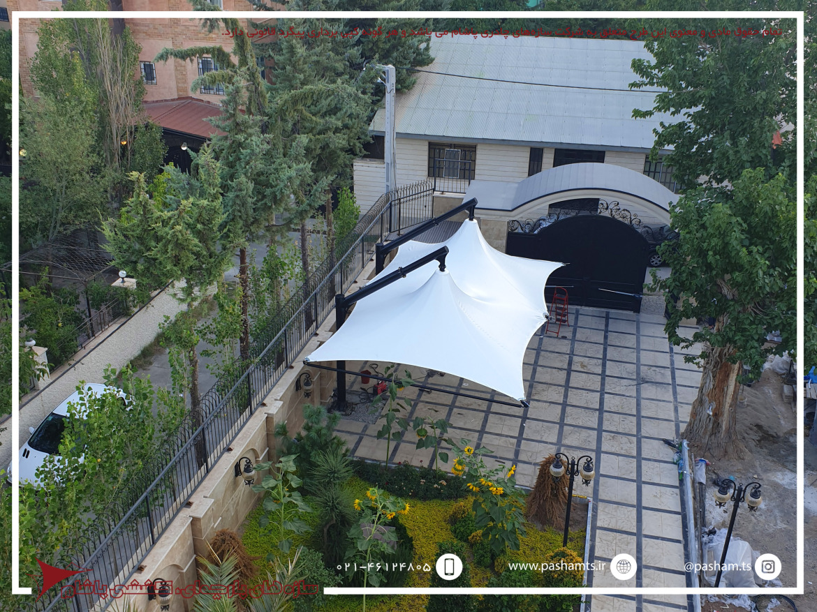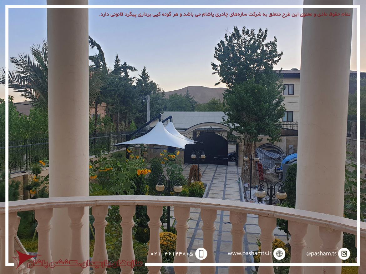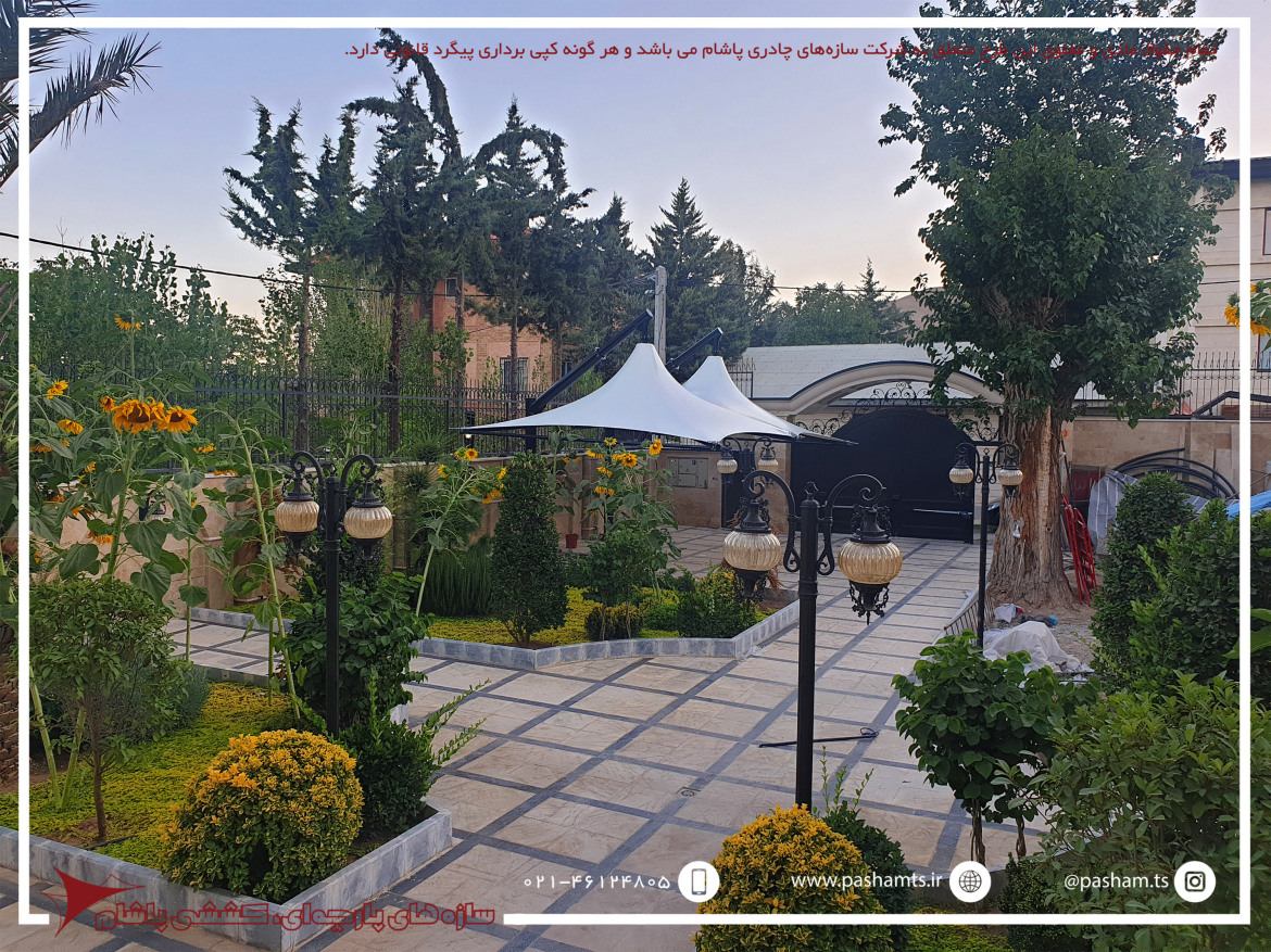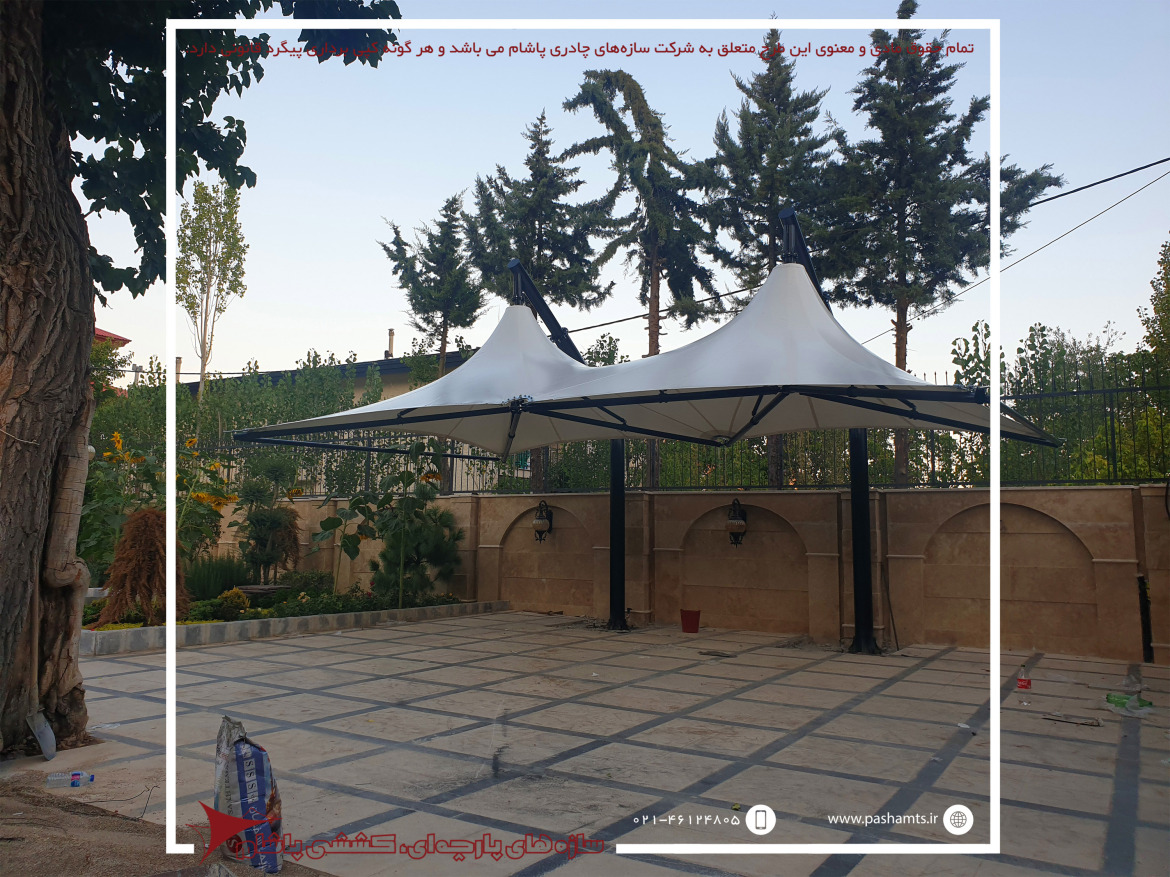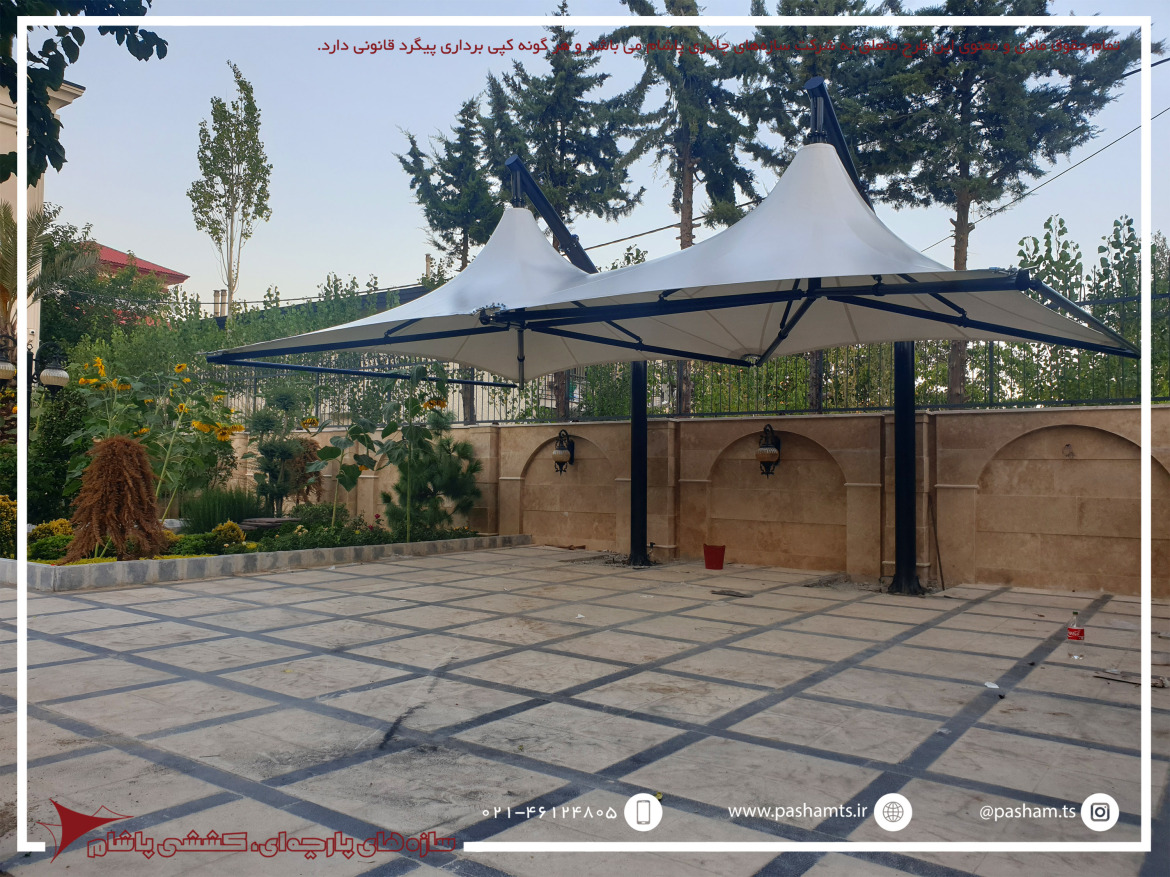 سایبانی به صورت دوقله با دو ستون در قسمت کناری سایبان که مناسب فضاهای کشیده و مستطیل شکل می باشند.