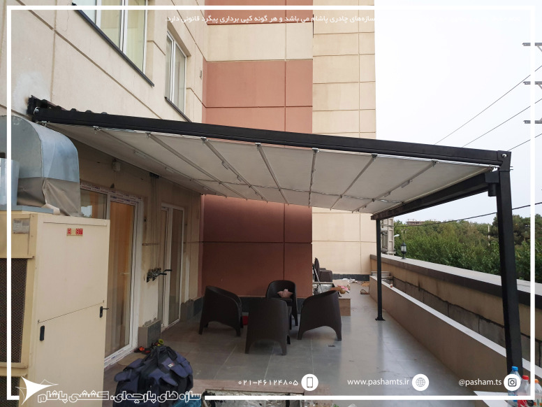 سایبان پارچه ای متحرک سایبانی باز و بسته شونده با فرم شیب دار است که این امکان را برای شما فراهم میکند تا به آسانی برای خود سایه ایجاد کنید و یا از دیدن آسمان لذت ببرید.