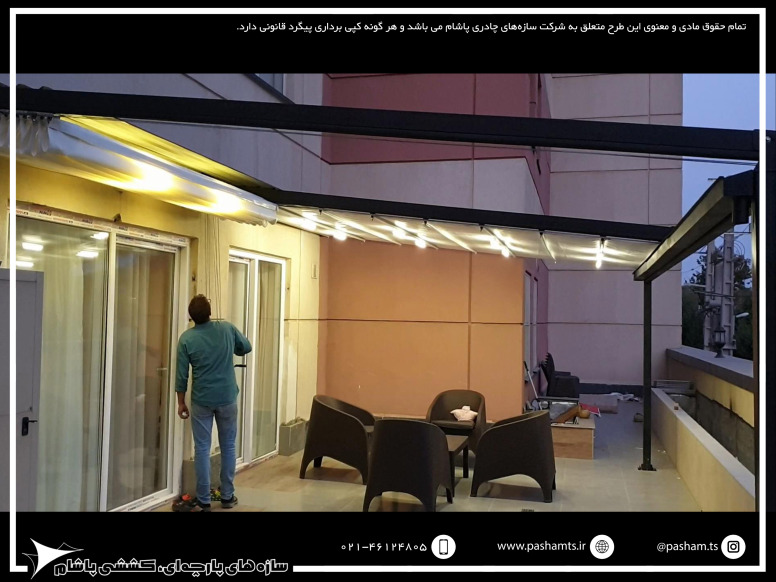 سقف متحرک پارچه با هدف افزایش فضای سایه در فصول گرم سال در تراس یک منزل مسکونی در گرمدره طراحی و اجرا شده است که علاوه بر محافظت در برابر افتاب پوشش های پارچه ای می توانند پوشش مناسب در برابر بارش باران و نزولات جوی نیز ایجاد کند.