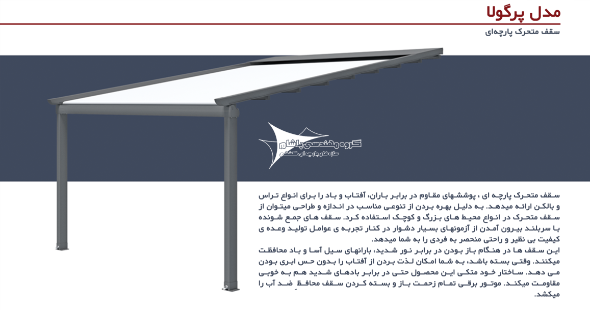 سقف جمع شونده پارچه ای یک سیستم پوشش پارچه ای و آلومینیومی است که با کمک موتور برقی کار میکند.
